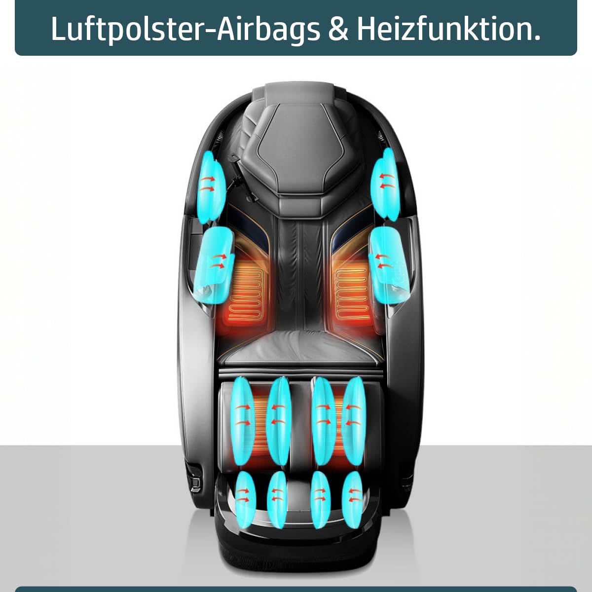 - 𝐓𝐢𝐞𝐟𝐞𝐧𝐞𝐧𝐭𝐬𝐩𝐚𝐧𝐧𝐮𝐧𝐠 𝐯𝐨𝐧 𝐊𝐨𝐩𝐟 𝐛𝐢𝐬 𝐅𝐮ß: Die extra lange SL-Schiene passt sich Ihrer Wirbelsäule ergonomisch an und massiert gezielt Rücken, Taille und Gesäß für ein umfassendes Ganzkörpererlebnis. Luftkissen und Rollen sorgen für wohltuende Fußmassagen, während die integrierte Wärmefunktion im Lenden- und Wadenbereich die Muskulatur sanft lockert. Das Fußteil ist um 15 cm verlängerbar und somit ideal für Personen mit 150 – 195cm Körpergröße