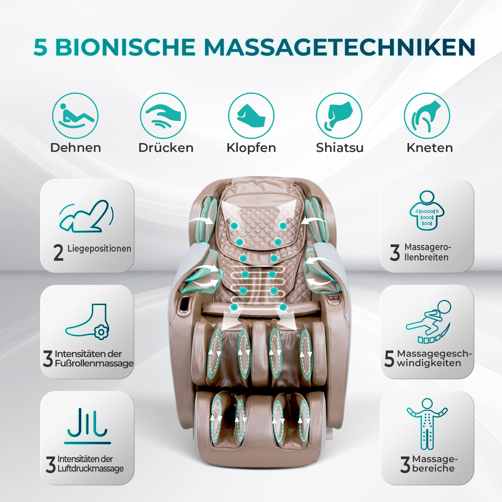- 👍🏼【Unterschiedliche Massageprogramme】Individualisierbare Massagefunktionen: 11 Shulterpunkte, 2 Zero-Gravity Liegepositionen,einstellbare Fuß- und Rückenmassagestärken,einstellbare Massagegeschwindigkeiten, Wärmefunktion, automatische Timer, 3 Massagezonen (Ganzkörper/Oberkörper/Fixpunkt), einstellbare Luftdruckmassage sowie 12 automatische Programme