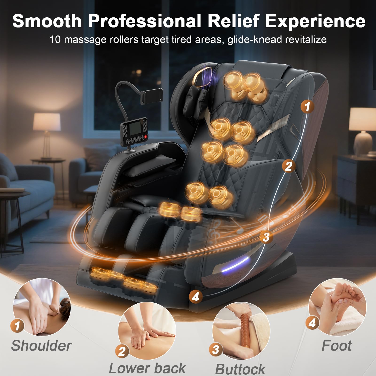 - Multifunktions-Massagesessel: 2-in-1-Telefonständer + Touchscreen-LCD, mit dem Sie den passenden Massagemodus auswählen können. Dank Bluetooth-Audio-Konnektivität können Sie während der Massage Ihre Lieblingsmusik genießen. Dank der Basisrollen können Sie den Sessel außerdem leicht im Raum bewegen.