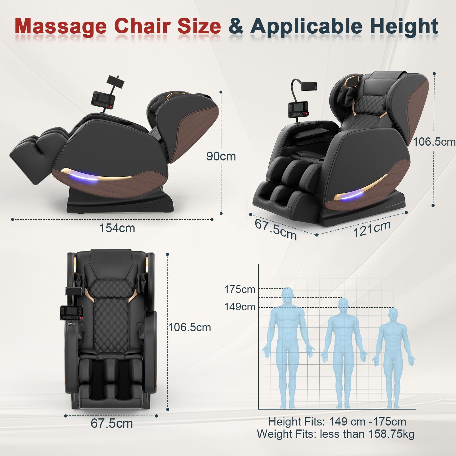 Ganzkörper Massagesessel 14 Rollen 8 Airbags Wärmefunktion Beine Taille Bluetooth Touchscreen Zero Gravity Heimkino Relaxsessel Massage Chair