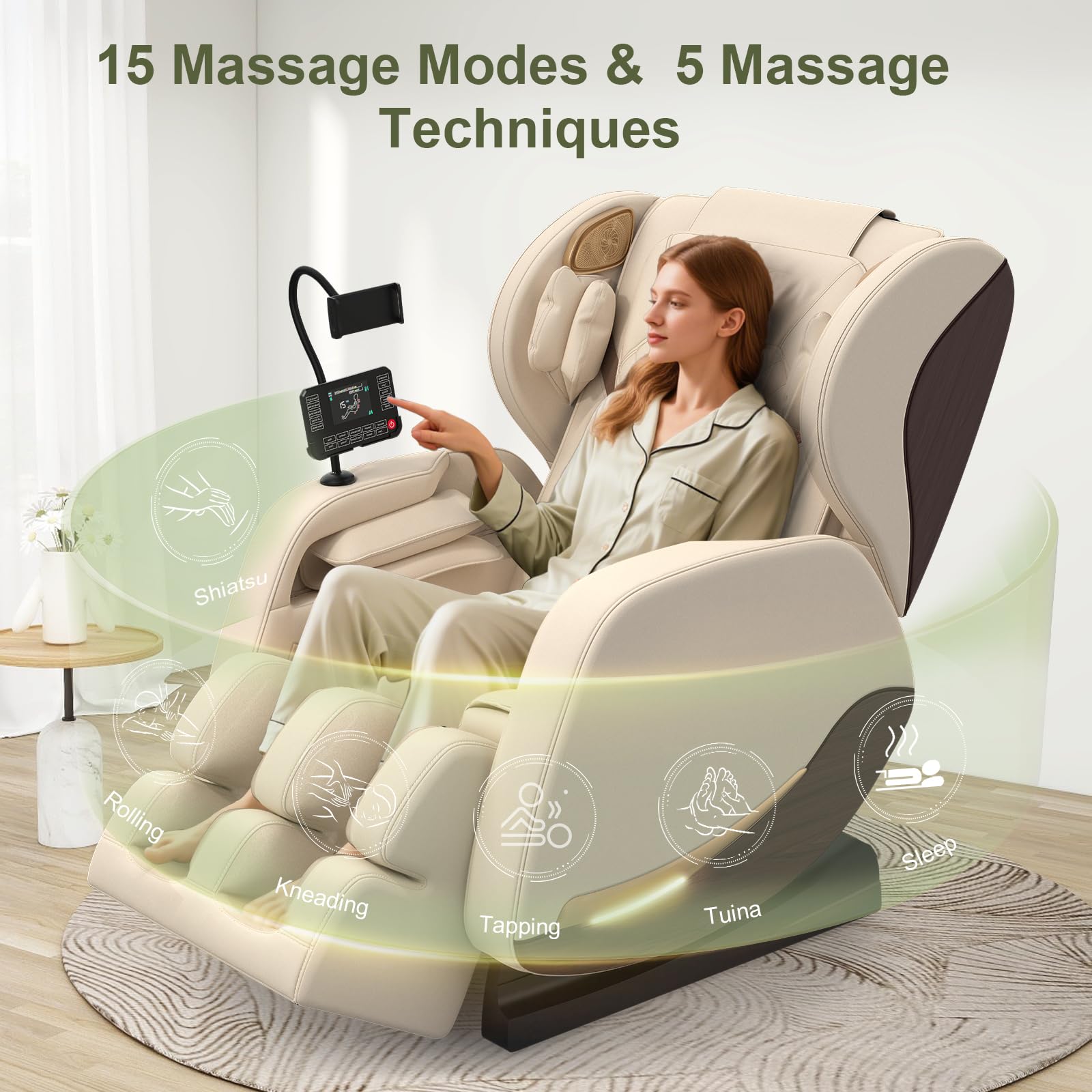 - Multifunktions-Massagesessel: 2-in-1-Telefonständer + Touchscreen-LCD, mit dem Sie den passenden Massagemodus auswählen können. Dank Bluetooth-Audio-Konnektivität können Sie während der Massage Ihre Lieblingsmusik genießen. Dank der Basisrollen können Sie den Sessel außerdem leicht im Raum bewegen.