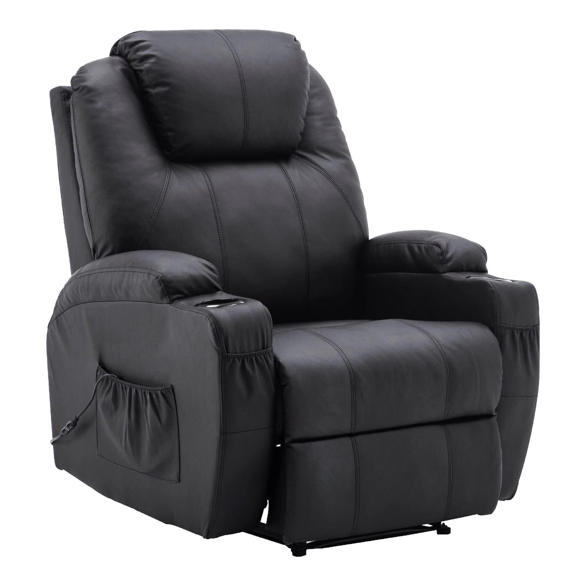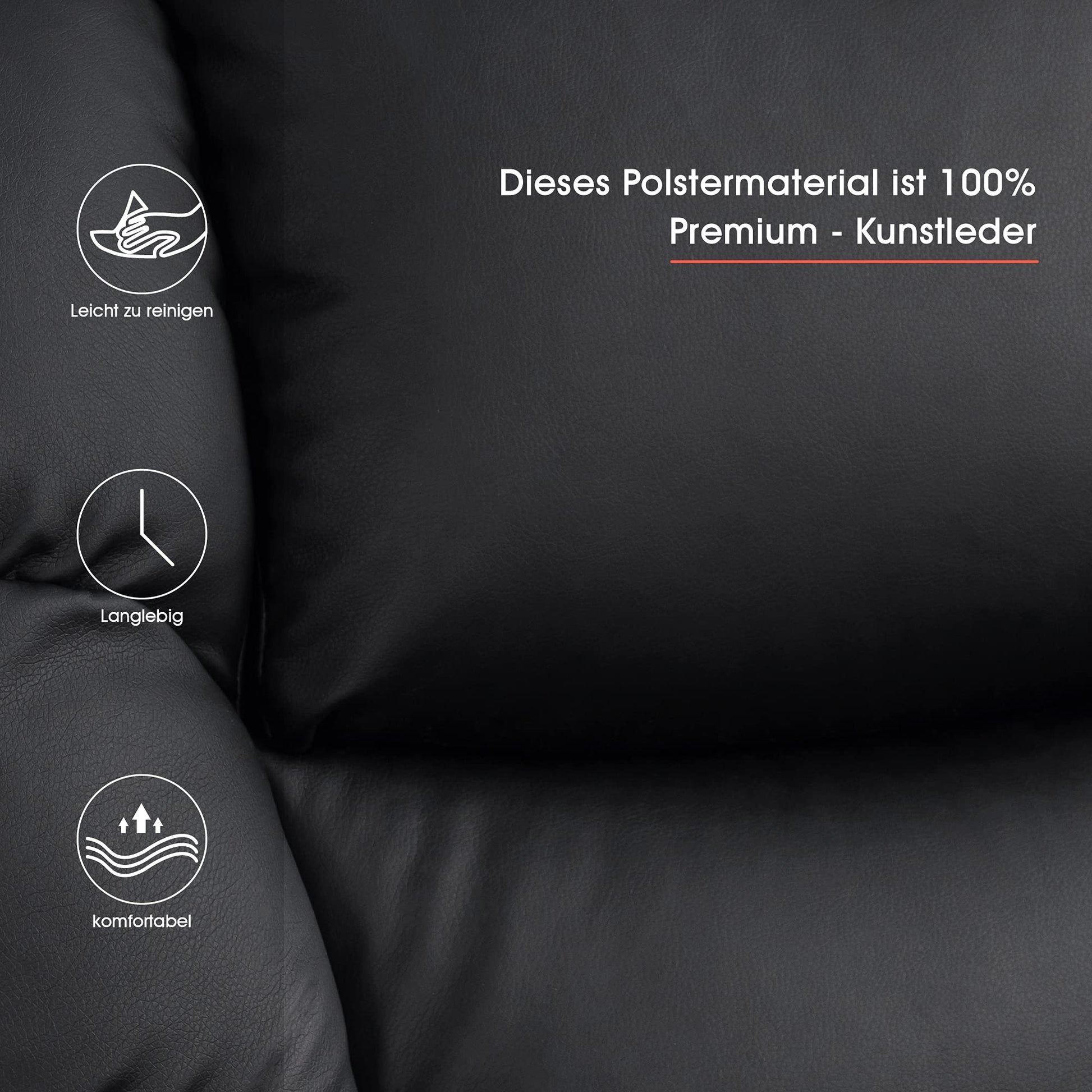 M MCombo Elektrisch Relaxsessel Massagesessel Fernsehsessel Liegefunktion Vibration Heizung 7061 neues Modell (Schwarz-Kunstleder)