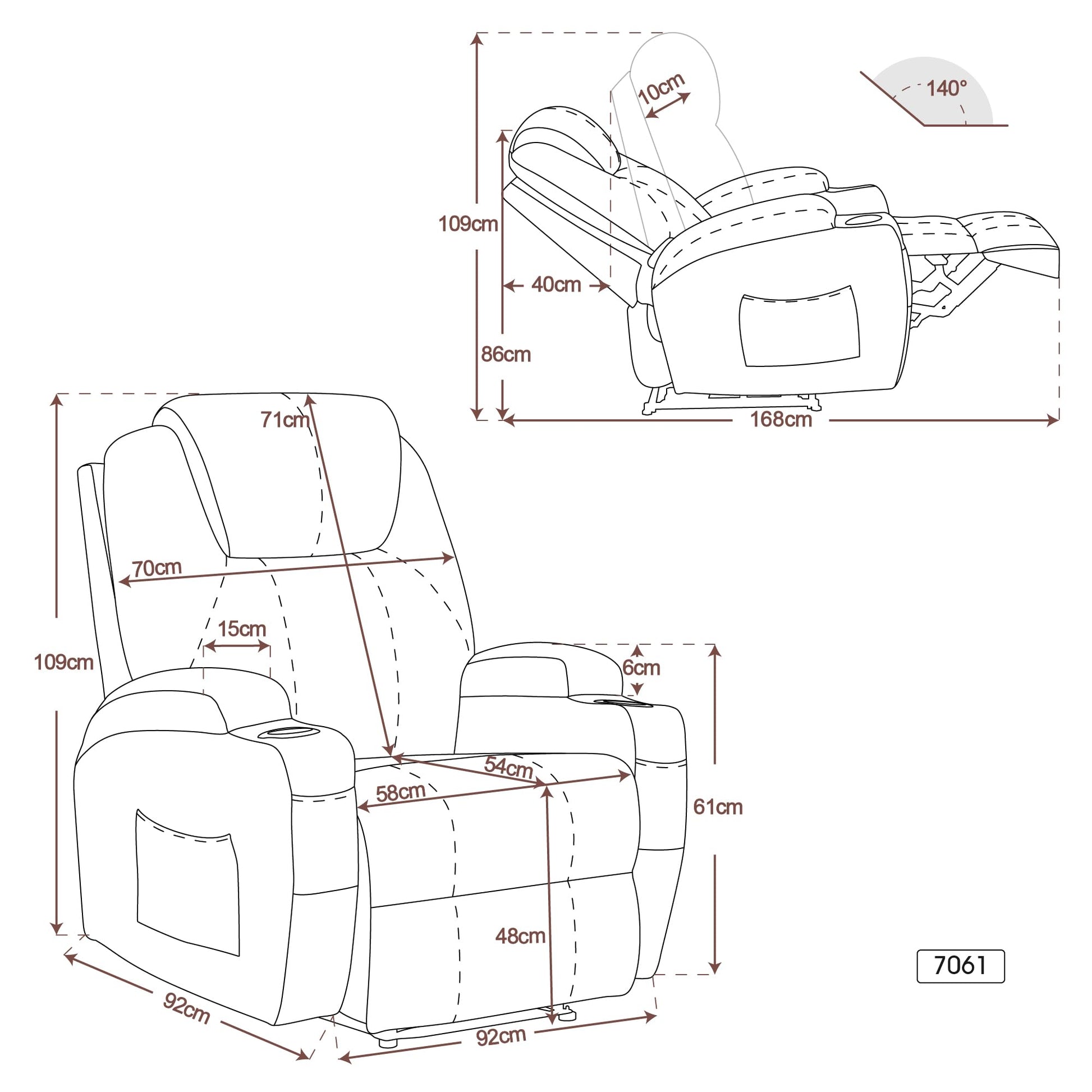 - Hinweis: 1. Dieser elektrische Massagesessel verfügt über keine Aufstehhilfe. 2. Die Massagefunktion ist nicht für Person mit Herzschrittmacher geeignet.
