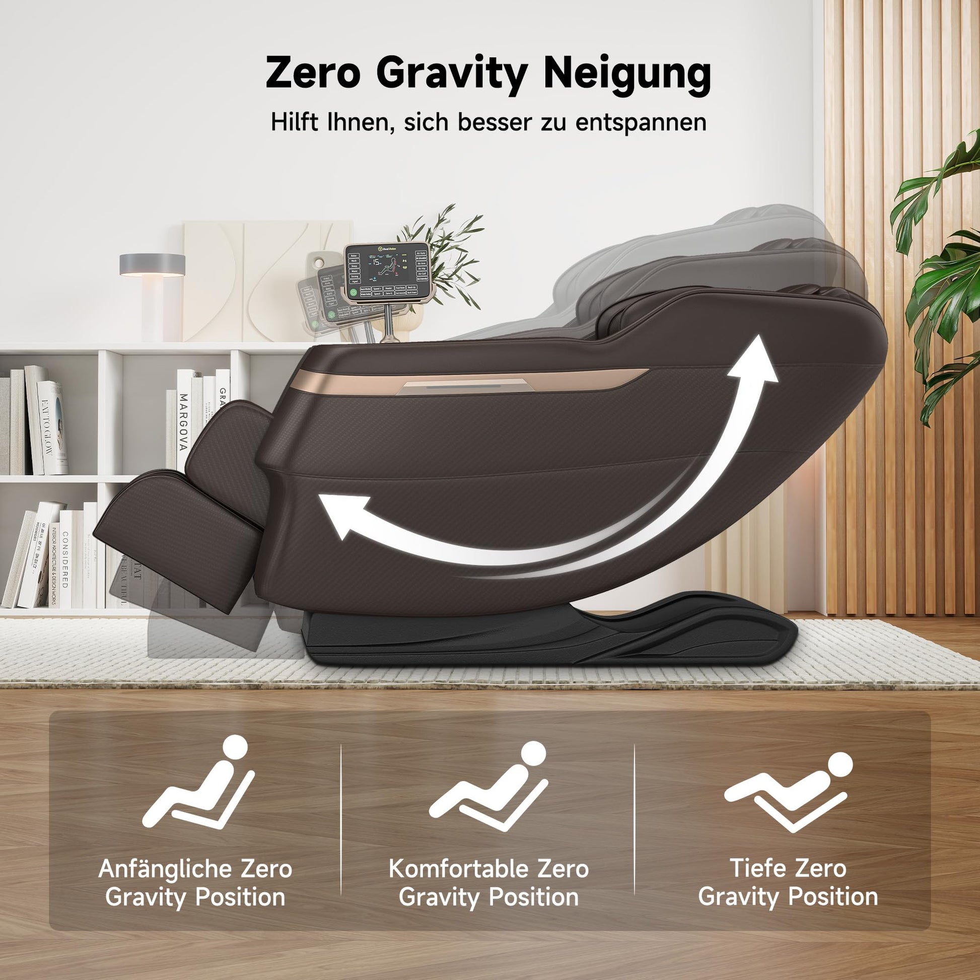 - 【Zero-Gravity-Funktion】Die tiefe Zero-Gravity-Position simuliert ein schwereloses Gefühl für optimale Entspannung. Nach Ihrer Massage bleibt der Sessel in der Liegeposition für anhaltende Ruhe und kann auch bequem als normale Relaxsessel genutzt werden
